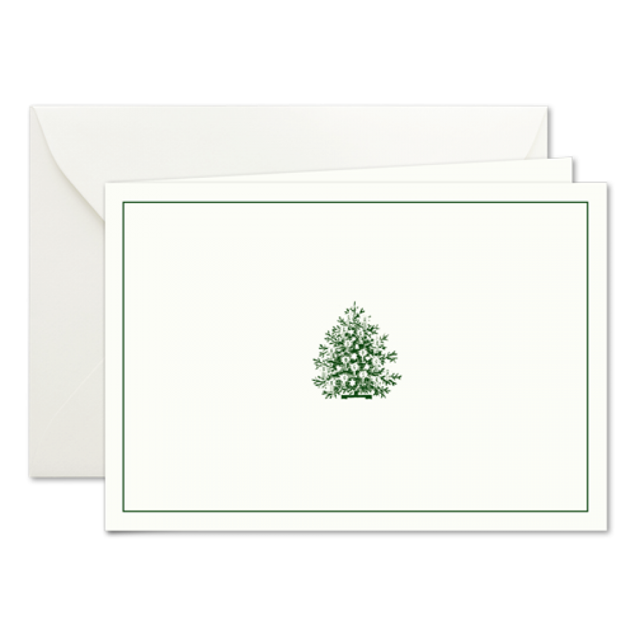 Christbaum, Klappkarten in Dunkelgrün. Das Motiv befindet sich auf der Vorderseite. Die Innenseiten und Rückseite sind blanko und können von Ihnen beschrieben werden.Diese exklusiven Weihnachtskarten sind auf unserem Opaline Spezialkarton im klassischen Prantl Hausformat (130 x 90 mm) gedruckt.Erhältlich in Stückmengen von fünf oder zehn Karten. Mit diesen eleganten Weihnachtskarten erhalten Sie unsere edlen seidengefütterten Briefkuverts mit Spitzklappe im passenden Format.