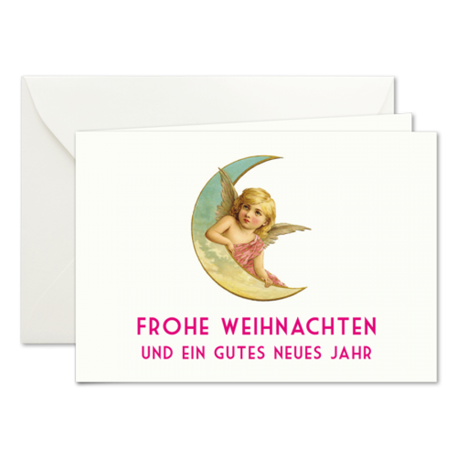 Weihnachtskarten mit Halbmond. Das Motto befindet sich auf der Vorderseite. Die Innenseiten und Rückseite sind blanko und können von Ihnen beschrieben werden.Diese hochwertigen Weihnachtskarten sind auf unserem Opaline Spezialkarton im klassischen Prantl Hausformat (130 x 90 mm) gedruckt.Erhältlich in Stückmengen von fünf oder zehn Karten. Mit diesen exklusiven Weihnachtskarten erhalten Sie unsere edlen seidengefütterten Briefkuverts mit Spitzklappe im passenden Format.